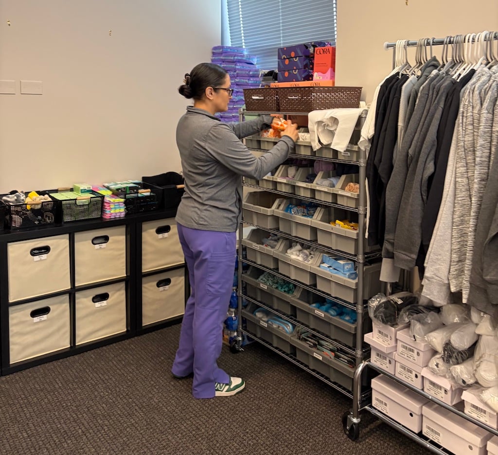 Many of those who come from the South have never left their home state, Cowett said, and it can be overwhelming for them to come to a big city during an already emotional event. The abortion fund and others help supply a closet in the clinic that is stocked with toiletries, basic clothing, shoes and other items to assemble care packages for patients.